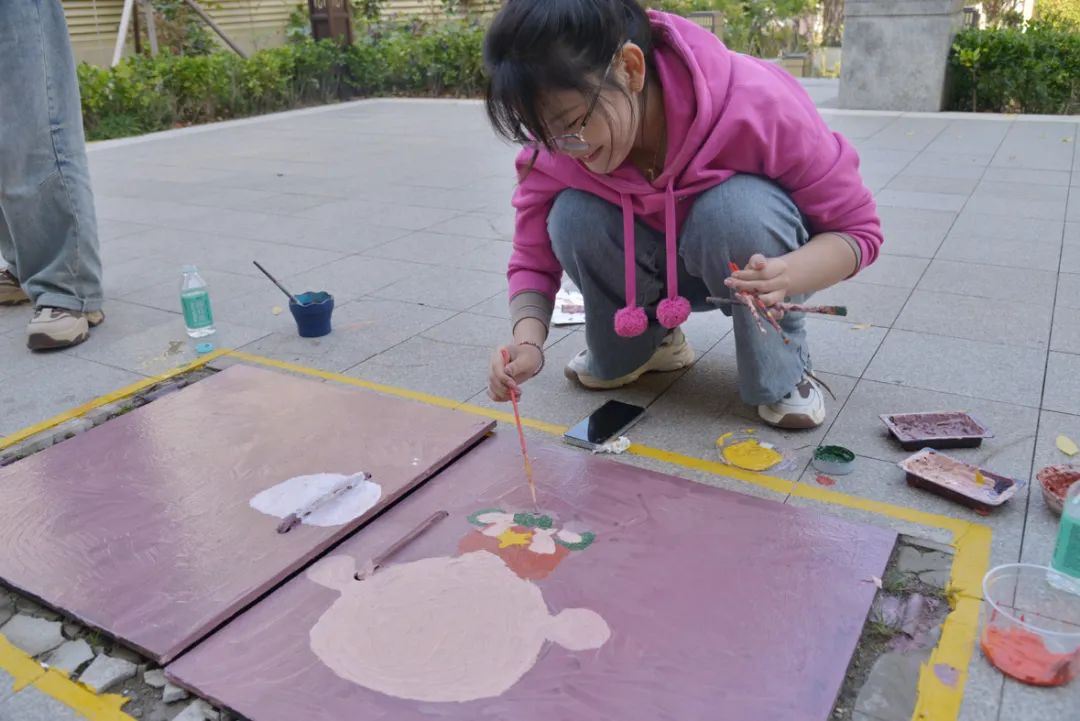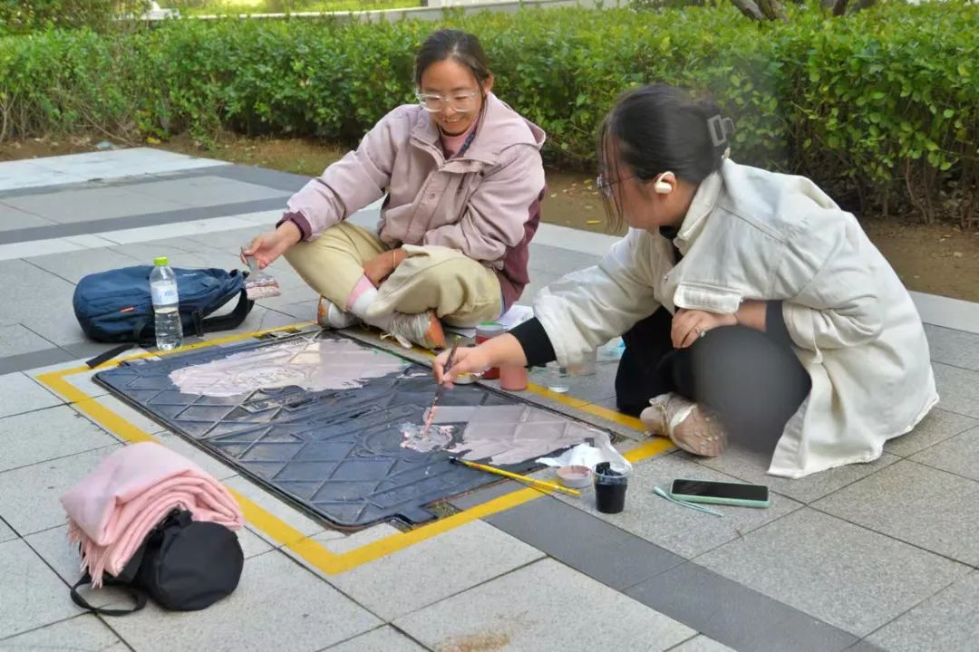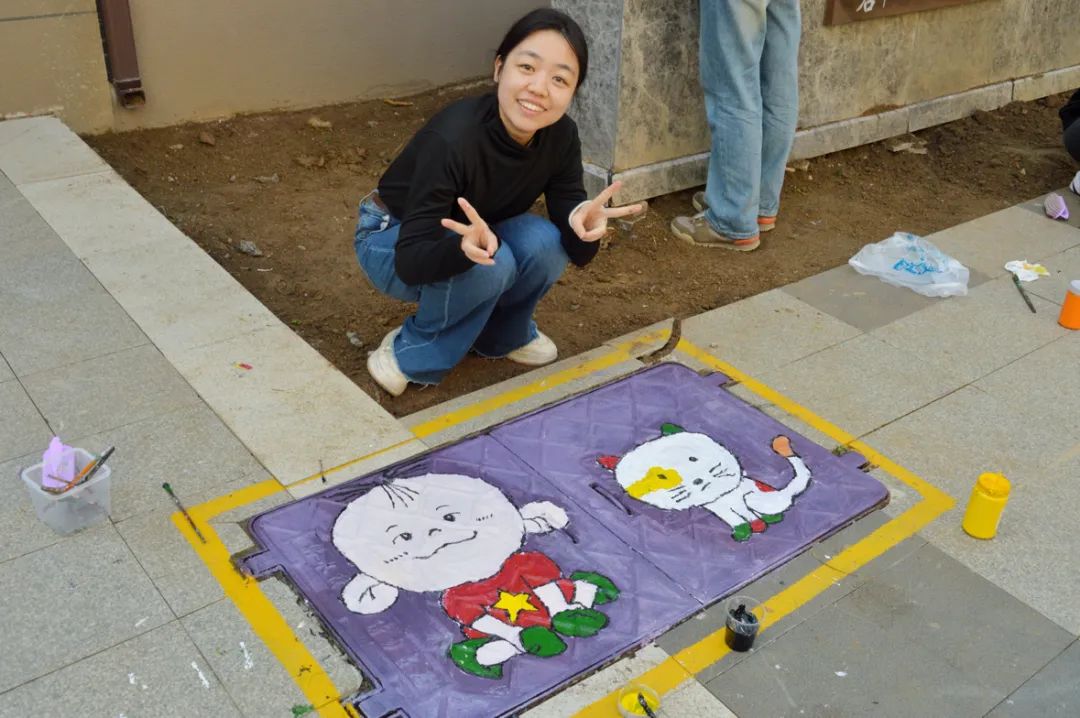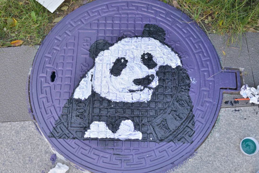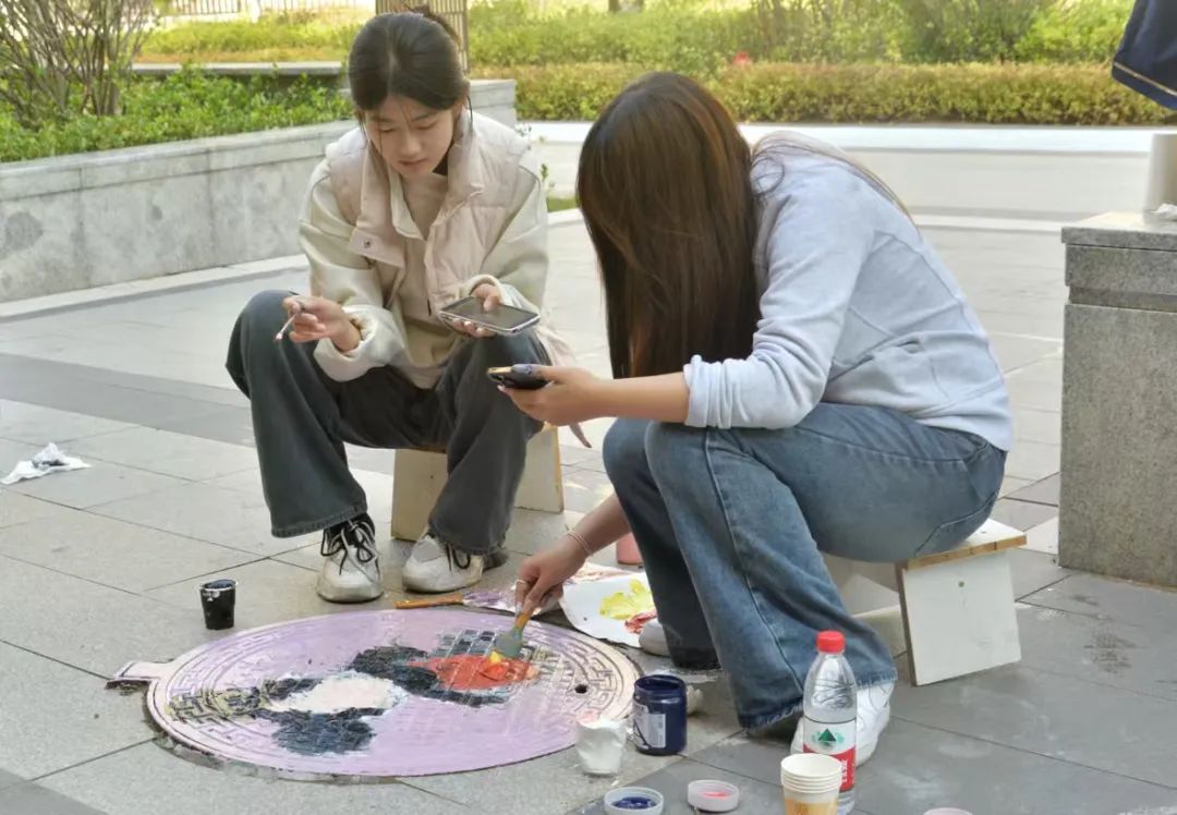 同学们根据审定的初稿进行绘制,五颜六色的线条和生动逼真的画面让黯淡的井盖变成了一幅幅画,一井一画,一步一景。在同学们的巧手下,原本毫不起眼的井盖焕发出独特的色彩,展现出别样的艺术魅力。这些彩绘的变成了社区一道靓丽的风景线,给居民生活增添了艺术气息。