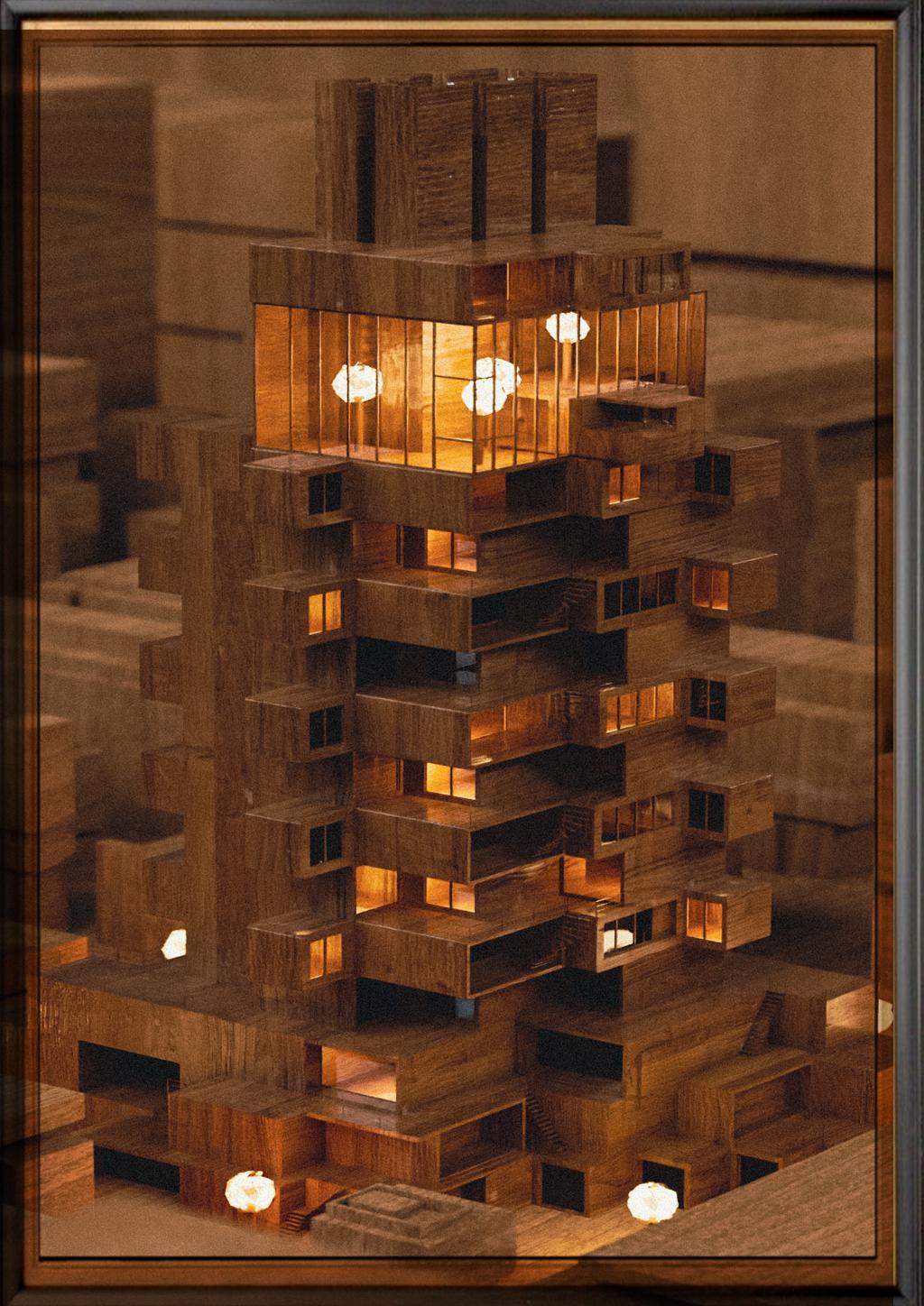 作品《心灵捕手》以当下城市高层建筑对居民共享空间的压缩为切入点,尝试以装配式、模块化方式完成建筑物建造,并在高层建筑中产生空中院落、共享空间、公共空间、空中花园等来加强人们交流、联系,以期拉近人与人之间的距离,实现真正的心灵沟通。