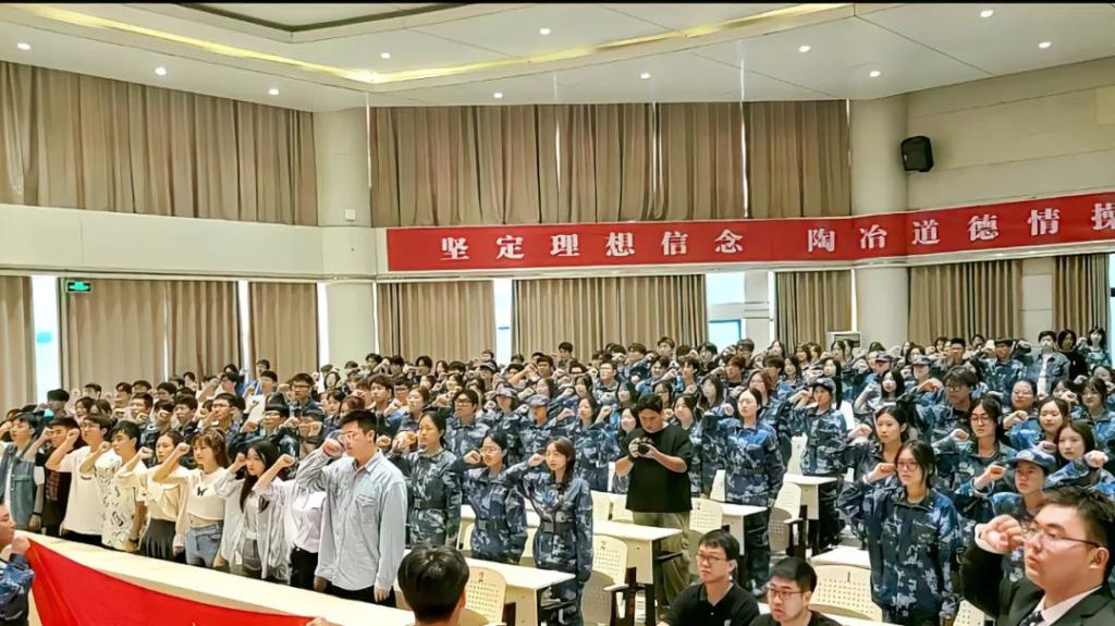 辉煌的发展历史感到无比的骄傲和自豪,今后会苦练本领、追求卓越、坚定信念,不负青春韶华。本科生新生代表张雨晴抒发了自己在军训中的感悟,并表示在接下来的学习生活中将用实际行动发扬“海纳百川”的气魄和“敢为人先”的品格,不忘初心,勇毅前行。