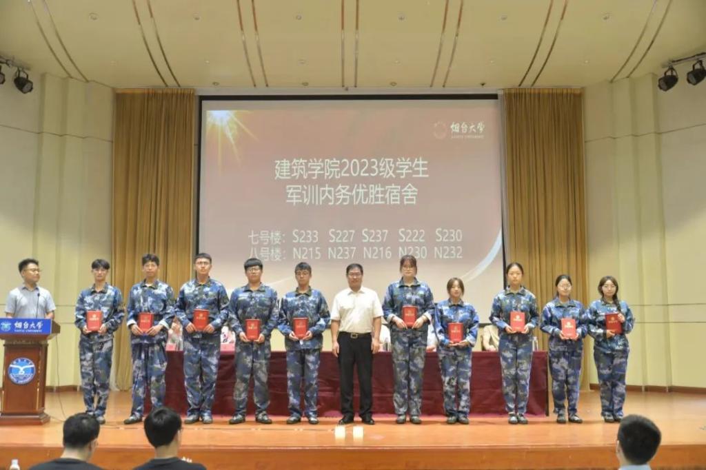 2023级学生军训表彰大会中,学院领导和老师对军训内务优胜宿舍、军训标兵、军训优秀学员、新生优秀导助、军训工作突出贡献个人颁奖。