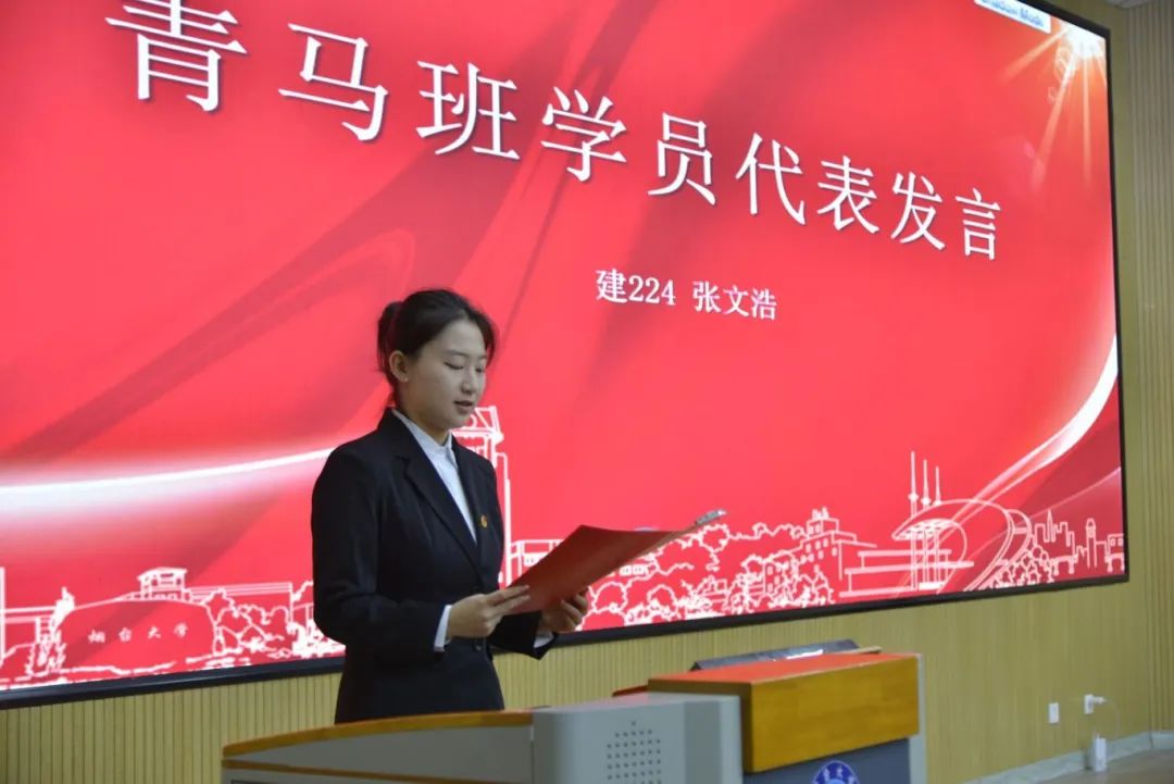 青马班学员代表张文浩从坚定理想信念、坚持知行合一、练就过硬本领三个方面探讨了身为建筑学子,应该怎样以更加奋进的姿态为中国式现代化挺膺担当。