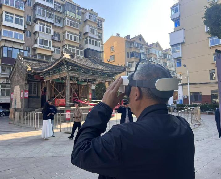 本次调研以虚拟体验建筑遗产环境更新设计为核心亮点,通过展板展示、VR空间模拟及文创产品设计,系统呈现活化更新方案。市民通过VR设备沉浸式感受戏台未来场景,直观体验建筑空间与公共生活的融合升级。
