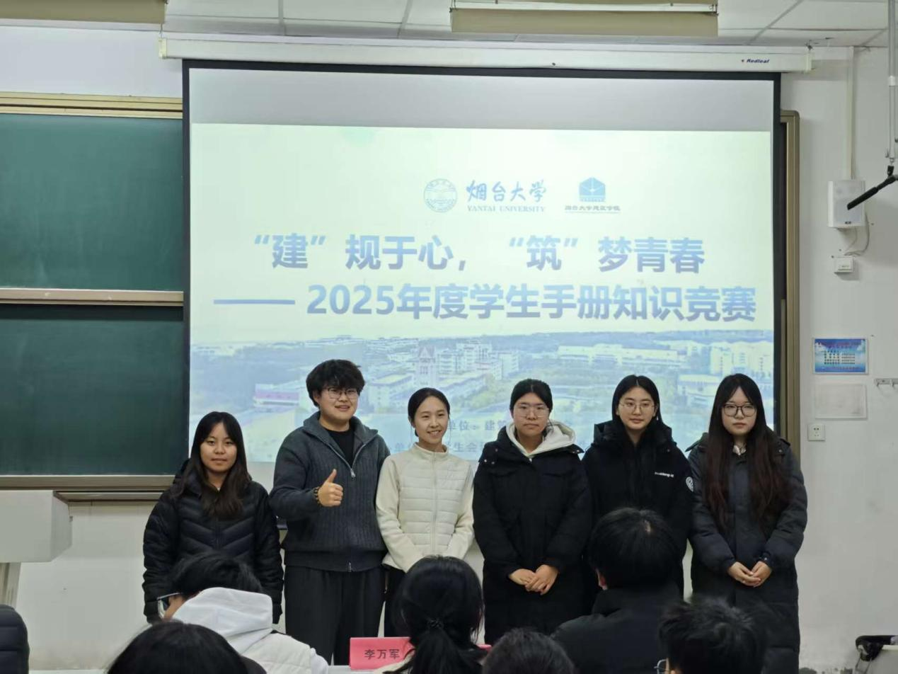 于12月24日在综合楼302教室顺利举办2025年度学生手册知识竞赛。9支参赛队伍同台竞技、各展风采,为现场师生呈现了一场集知识性、竞技性与教育性于一体的青春盛宴。