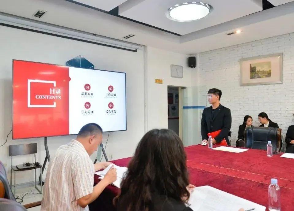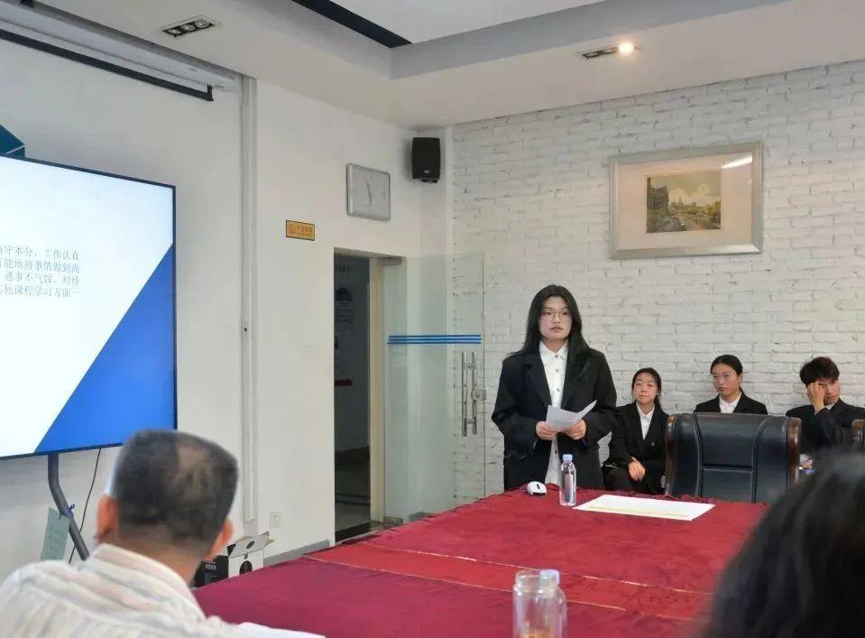 答辩开始之前,主持人介绍本次答辩的规则。参加答辩的同学从个人学习成绩、学生干部任职情况、获奖经历以及参加各类赛事情况等方面展开介绍。每位答辩候选人在答辩过程中都展现了积极向上的精神风貌,答辩现场掌声不断。