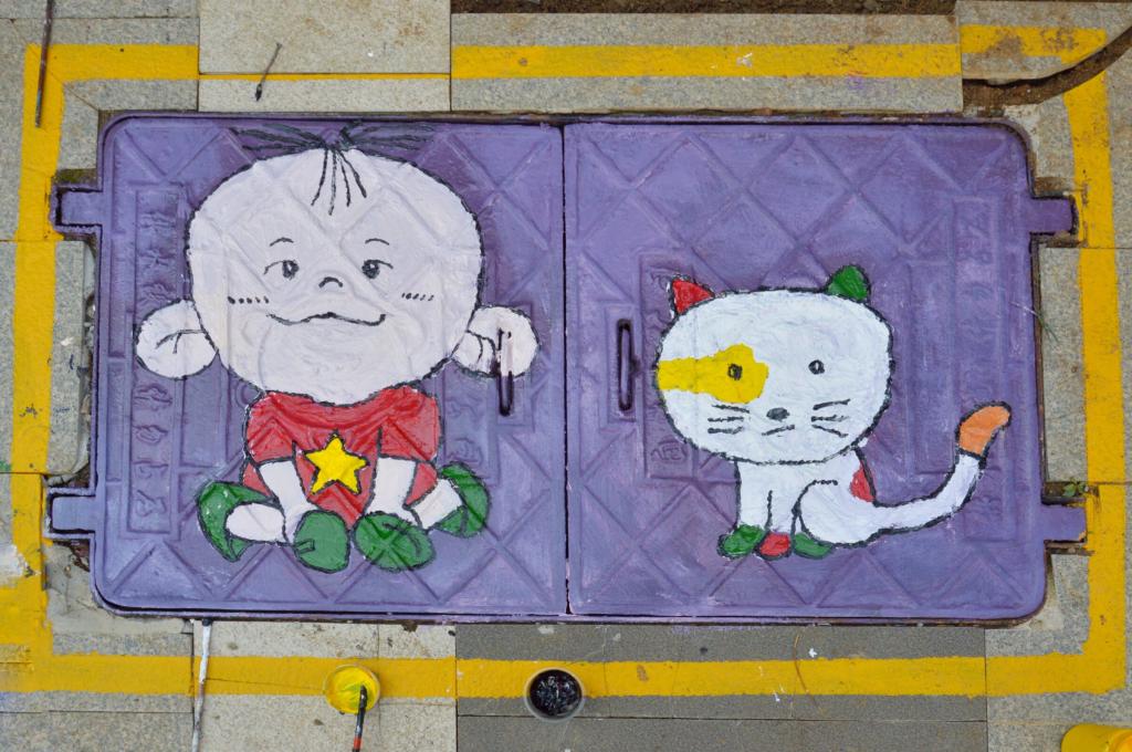 同学们根据审定的初稿进行绘制,五颜六色的线条和生动逼真的画面让黯淡的井盖变成了一幅幅画,一井一画,一步一景。在同学们的巧手下,原本毫不起眼的井盖焕发出独特的色彩,展现出别样的艺术魅力。这些彩绘的变成了社区一道靓丽的风景线,给居民生活增添了艺术气息。